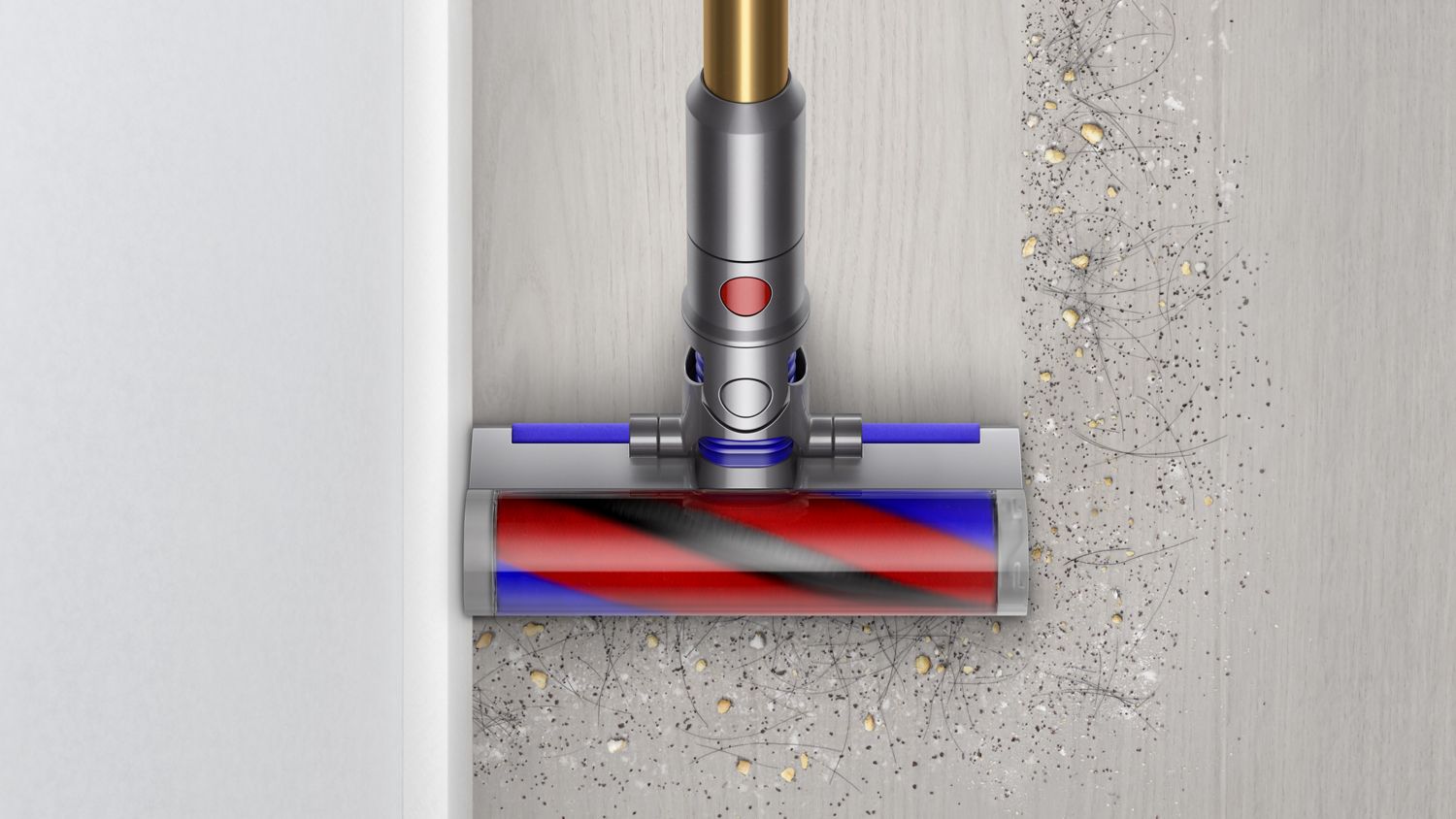 O motor digital Dyson integrado faz com que o rolo da escova gire para poder ser usado em almofadas ou pisos duros.